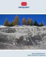 Slope retention systems, also known as anchored mesh systems, consist of nets or netting anchored to the slope using a dense matrix of soil or rock anchors and specialized anchor plates. The anchor spacing and placement is determined by the anticipated failure mode and potential mass of material mobilized. The system is designed to resist the loads and retain the material in situ.